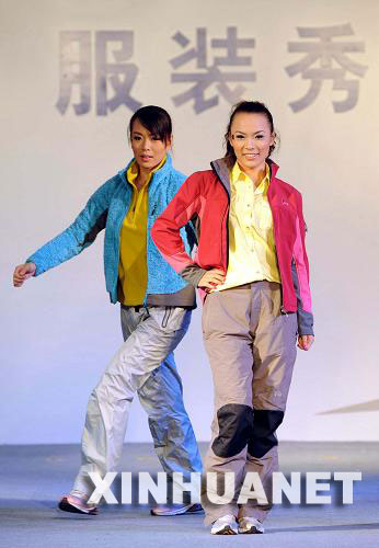 7月30日,模特在展示户外服装和背包等配套用品。当日,2009亚洲户外用品展览会在南京开幕,展会现场举行“户外服装秀”表演,模特们以户外运动风格的走秀方式,展示了10多个国际品牌的新款户外服装、鞋帽以及配套的户外运动产品。新华社记者 孙参摄