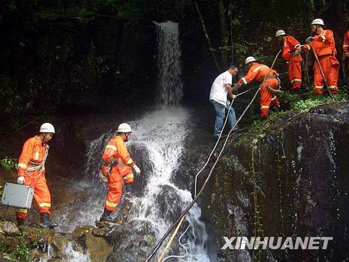 8月16日,搜救人员在炉西峡内展开搜救行动。新华社发(李肃人 摄)