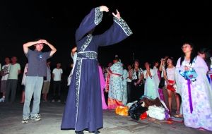 昨日20时30分,来自汉服爱好者协会的共计80名传统文化爱好者分别在后海荷花市场及永定门城楼处进行了七夕节庆祝活动。