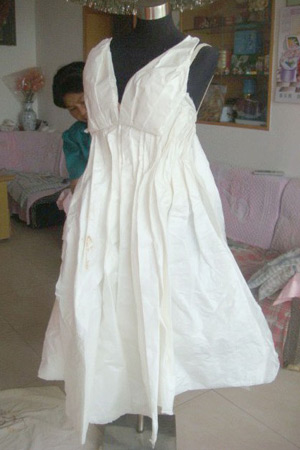 有了雏形的纸婚纱