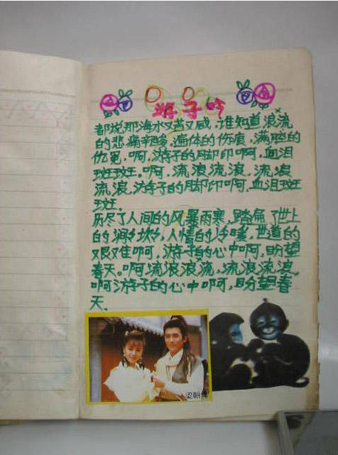 课余生活的乐趣之一就是抄歌词。那时候人手一本歌本,在旁边贴上贴贴纸,图文并茂,很有成就感。要是嫌自己的字不好看,还可以去请字写得好的同学帮忙抄写。