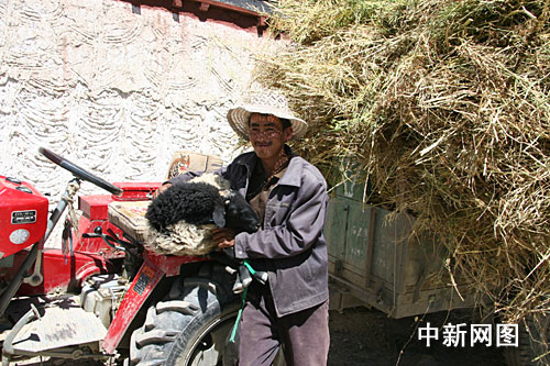 农户带着准备卖掉的羊。