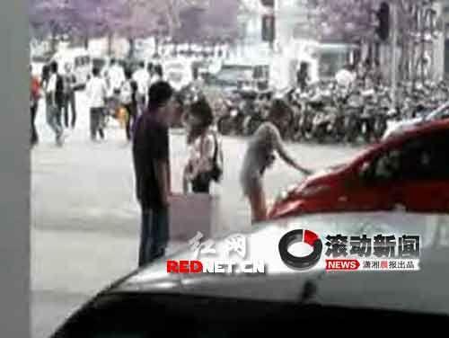 女子拿钥匙在车前盖上划了两下。 视频截图