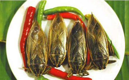 雨季蚱蜢多,可生吃或炒吃,各个季节都是人们的最爱,当地市场非常多。