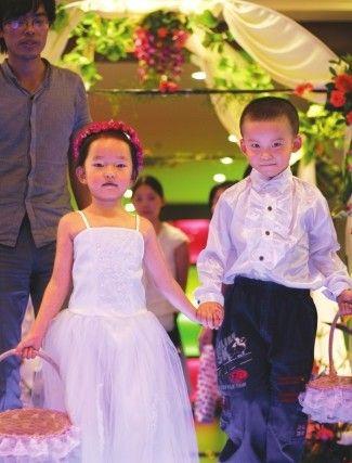 花童的历史由来已久,但过去一般都是新人亲戚朋友的孩子来客串一下,而像小胖这样的专职花童,大约是前年才开始在成都兴起的。“有可爱的孩子参与其中,婚礼的气氛会好很多。”成都蓝戒指婚庆公司负责人唐荣说,目前活跃在成都婚庆市场中的专职花童,已经超过百人。