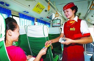 妹妹杨杰在公交车上售票
