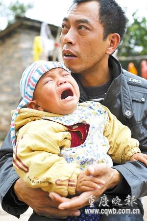 牛牛躺在父亲怀中哭泣