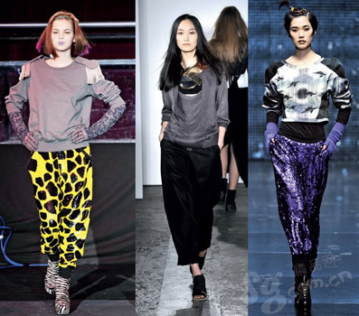 松垮哈伦裤的走俏,令同样宽松舒适的运动裤也呈现出时装化趋势。一向被认为登不了大雅之堂的它们仿佛一夜之间改头换面,就算是最传统的纯棉质地,也可以搭配起个性十足的首饰和服装,成为当下最IN的潮流形象。