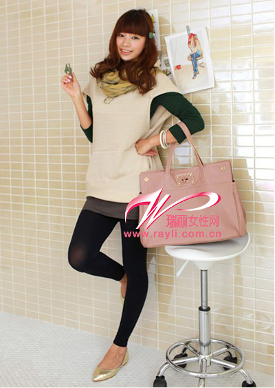 白色宽松款小毛衫休闲而随意,搭配灰色半身裙,超短的款式让你秀出完美腿型!
