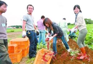 一群未婚男女在东京北部的偏僻的茨城县一起挖甘薯。