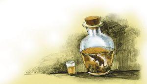 “有几天药酒喝起没有酒香,自己还很郁闷。”周文权说,三周前,他的酒坛子快见底,舀酒时会带出一些药材。那天,他第二勺舀下去,一个泡得发白的小东西躺在勺里,开始他以为是泡的雪蛤,但看个头不对,太小了,再一看,小东西竟有四肢,像拇指大的小孩。周文权心头一惊,仔细一看,蜷着身子的“小孩”眯着眼睛,屁股后还有一根尾巴。“这哪里是什么中药材,分明是一只死老鼠。”周文权当场吓得把酒杯摔落在地。这时,朱光兰走过来说:“泡了7天才发现啊,这几天都喝的耗子酒哟。”