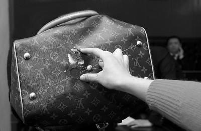 张小姐当庭展示LV包的受损处