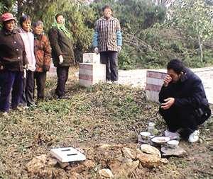 于是,现在到太子山顶晨练的人们经常会看到一位老人,在一座用土石堆起的小墓前,用小刀切着火腿肠放到盘子里,一边还有两只碗,碗内倒着热水,老人不时用手抹着脸上的泪,他,已经连续一个星期了。熟悉的人知道,他又来祭奠他那只刚死不久的流浪猫了。(本报记者 梅建明)