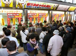 综合日本《读卖新闻》、《朝日新闻》24日报道,日本的彩票“Jumbo”24日在日本全国统一开始销售。据称此次彩票一等奖的金额高达3亿日元。日本人纷纷排起长蛇一样的队伍购买。日本媒体称这是因为经济不景气人们想试一下运气。