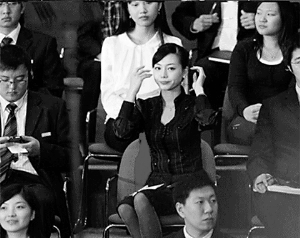 11月16日13时,对中国进行国事访问的美国总统奥巴马走进上海科技馆会场,与中国青年展开对话。但是和奥巴马的演讲相比,现场摄影记者对一名黑衣女子表现出了更大的兴趣。这名美女在现场脱掉红色外套露出黑色套装的全过程被记者用相机记录下来,被制作成GIF动画上传网络,随后这组动画在网上论坛以及QQ群里广泛传播,随后又有网友将奥巴马演讲视频中有关该女子的片段截图上传,黑衣美女的美貌和气质迅速倾倒众人。