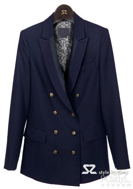 我们经常可以从正统的制服中窥见双排扣的影踪,如军装、校服等。抛弃了黑色西装的呆板沉闷,深蓝色调却为你带来一种冷静沉着的情绪,也在视觉上有收缩的的效果,让你身材更显瘦。金色的双排纽扣就如点睛一般地与深蓝色面料对比得十分好看,这款充满制服正式感的西装绝对是为知性OL而存在的,硬挺的面料和剪裁别致的领型,为你带来十足的干练感!