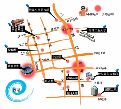 本次报道旨在总结杭州相对繁华地区的小偷活跃区域,综合前几次报道,我们列出了以下几个重点区域: