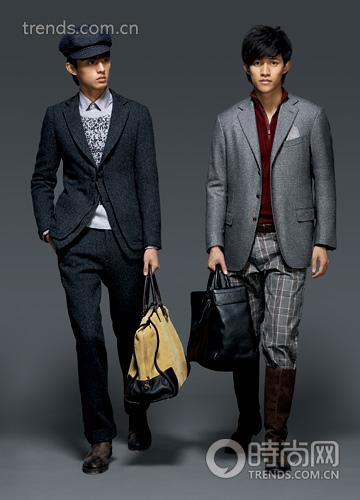 格纹裤子:格纹裤子是软呢西服上衣的完美选择,在格纹的不同色彩中找到软呢上衣的颜色,会使得搭配轻松、简单。