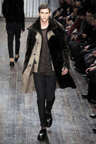 首先要把皮衣剔出在外,皮衣展示的是浪子情怀,这里的皮衣特指皮革,如果是绒面皮则非常 OK,其触感明显就很讨女人喜欢,比如 Alessandro Dell'Acqua 的毛皮大衣,短而整齐的皮毛没有皮草的暴发户气质,而是更倾向于麂皮的学院气。再要剔出的是偶像剧中的牛角扣兜帽大衣,很讨人喜欢,但不适合成熟男士,要是你实在喜欢这样的款式,可以选择 Paul Smith 的灯芯绒大衣,起码色泽和款型更为沉稳。