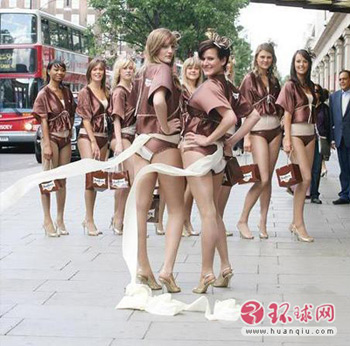 当地时间2009年6月19日,英国伦敦,某卫生纸品牌新品发布,邀来辣妹着性感衣裳于街头走秀,其中两位模特还各自拖着一卷卫生纸行走,难道是为了摆显他们家的卫生纸的质量好吗。