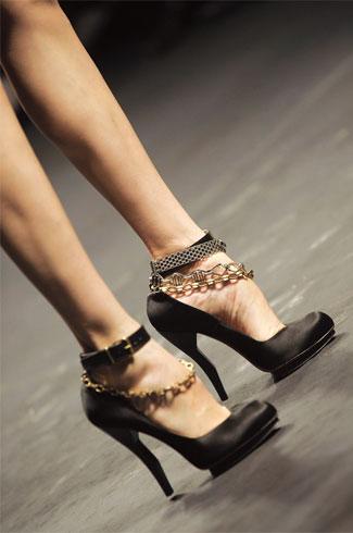 不景气时期,女人的鞋跟似乎会变高,很显然,本季天马行空的鞋形正是对经济萧条的一种藐视。然而关于高跟鞋究竟象征着女权还是男权的争论已经持续了几十年,时尚史学家Giorgio Riello 与Peter McNeil 在《鞋子:从凉鞋到球鞋的历史》一书中指出,1920 年代的妇女参政多以穿高跟鞋来展现女性特质,她们穿着钮扣靴和高跟运动鞋向世人证明,参政并不会抹煞女人味。