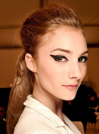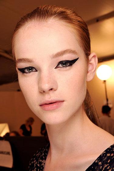 你所能看到的这种,线条干净、轮廓分明、颜色饱和浓重、在眼角舒展上扬的黑色眼线,屡屡登上T台,在Chanel、Dolce &Gabanna、Cavalli的模特们的脸上演绎得淋漓尽致。