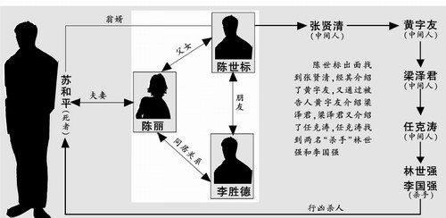 根据检察机关指控,被告人陈世标、陈丽、李胜德因都对死者苏和平不满,3人经共谋后,决定雇凶将其杀害。随后,陈世标出面找到张贤清,经其介绍了黄字友,又通过被告人黄字友介绍梁泽君,梁泽君又介绍了任克涛,以便于从中获利。