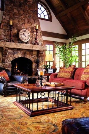 高耸的斜屋顶让青石粗朴壁炉得以充分展现,天花上的叠加木条呼应了落地门窗,似乎在任何空间都与自然融为一体。美式沙发的宽大舒适让会客或自娱自乐都了无障碍,沙发禁脏的面料和土黄印花的大幅地毯,在无限舒适的前提下又免除了清洁的繁琐。