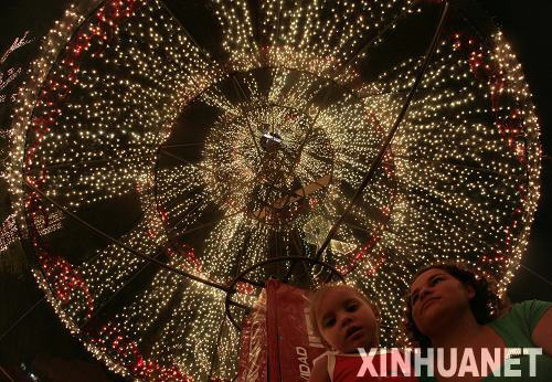 12月22日,巴拉圭首都亚松森街头的圣诞灯饰烘托出浓郁的圣诞节日气氛。圣诞节将至,亚松森街头装点一新迎接节日的到来。新华社发(乌巴尔多·冈萨雷斯摄)