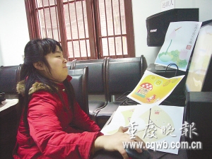 上午8点,观音桥某培训中心,朱玲在老师的指导下学习设计广告。