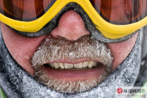 1月2日,瑞士阿罗萨,天气严寒,一名男子的胡须也结了冰。