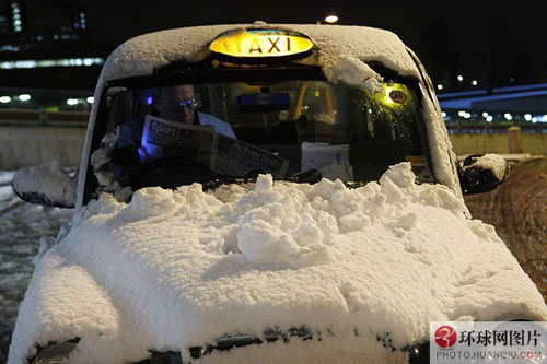 12月18日,英国伦敦火车站外,出租车司机躲在汽车里等待客人的到来。