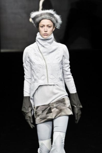 羽绒服看上去像夹克?没错,这就是今年设计师们力求羽绒服像其它衣款靠近的结果。RickOwens所有的Look都围绕着高领、肩膀高耸的夹克、包裹着颈部且在下摆处演变成各种各样不对称剪裁的设计展开。羽绒服可以像西装一样加上翘肩,也可以像夹克一样装上古怪的领子和拉链。羽绒的面料要达到这些款式的转变着实不易,怪不得有人称美国设计英雄主义的时代可能到来。
