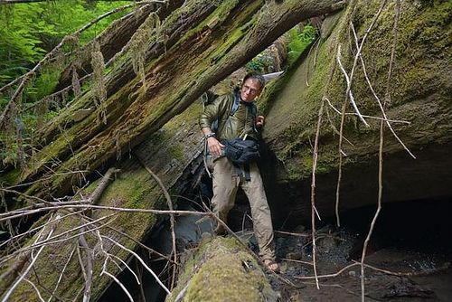 深入林间——国家地理学会特派探险家、摄影师麦克·福耶(Mike Fay)在红木国家森林公园内穿行。2008年,福耶和他的搭档林德希·霍曼(Lindsey Holm)完成了在红杉林区的首次穿越,在这次行程中,他们成功穿越了太平洋沿岸1800英里的区域。