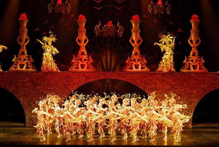 《金面王朝》自09年全新升级改版面世以来,不仅在国内颇受好评,在海外旅游市场上受到了热烈的追捧,已成为韩国、新加坡等旅游团队到京必看剧目。