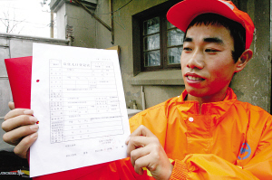 浓眉大眼、黑黑的脸庞,没有北方人挺拔的身高,80后环卫工王修小见到记者就不由自主地有些抖呵。问他问题,他愣个五六秒才张口回答。有一说一,说到自己想找的“另一半”就不好意思地嘿嘿傻笑,露出一口白牙。王修小就像是《士兵突击》里的许三多,木讷但却有股执着的韧劲。在南京扫了10年街,环卫工人王修小昨天领到了南京市常住人口登记表,成为南京8000多名农民工保洁员中第一个新南京人。