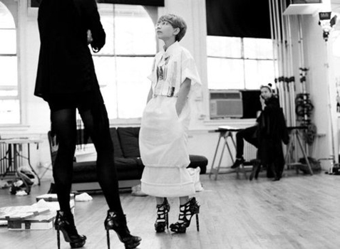 Tavi在幕后跟设计师Mulleavy商量Rodarte for Target的video promotion