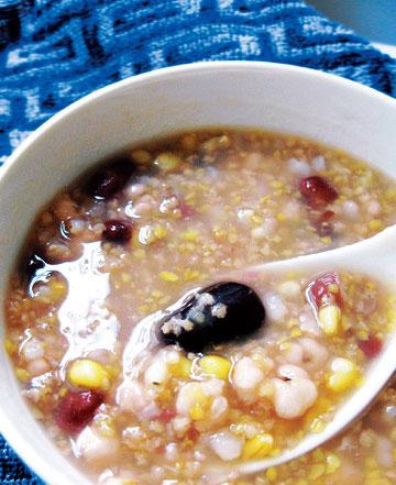 腊八粥又叫“七宝粥”、“五味粥”。最早的腊八粥是用红小豆来煮,后来经过演变,再加上地方特色,逐渐丰富多彩起来。清代《燕京岁时记》中写道:“腊八粥者,用黄米、白米、江米、小米、菱角米、栗子、红豇豆、去皮枣泥,合水煮熟;外用染红核桃仁、杏仁、瓜子、花生、榛穰、松子及白糖、红糖、葡萄等以作点染。切不可用莲子、扁豆、薏米、桂圆,用则伤味。每至腊七日,则剥果涤器,终夜经营,至天明时粥熟矣。”