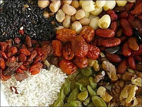 陕南人腊八要吃杂合粥,分“五味”和“八味”两种。前者用大米、糯米、花生、白果、豆子煮成。后者用上述五种原料外加大肉丁、豆腐、萝卜,另外还要加调味品。