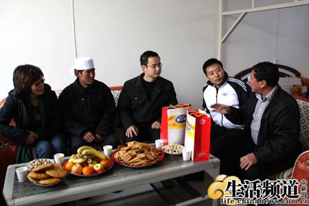在兰成明家,银川市扶贫办主任向雅士利集团张培喜先生介绍情况