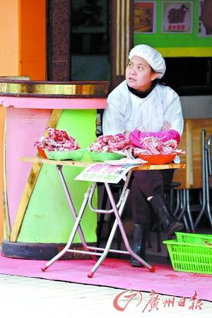 昨日,记者在惠福西路看到有人摆摊卖狗肉。实习生何国球 记者曹景荣摄