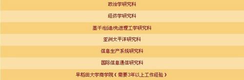 早稻田大学开放以下专业供获得奖学金的学生就读