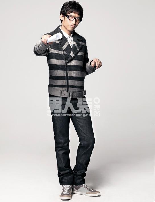 《男人装》决定帮他打造介于西装和完全休闲之间的一款造型,黑灰条纹夹克帮我们完成了这一夙愿。带着戏谑和幽生活一默的诙谐态度,这件夹克扮演了气氛调和师的角色——成熟中不乏锐气。配以同色系的黑色牛仔裤和白色衬衫,整体造型显得协调、有致。何以见得休闲呢?往下看,就算胡乱穿上一双舒适的大地色系的帆布鞋,也丝毫不显得突兀!