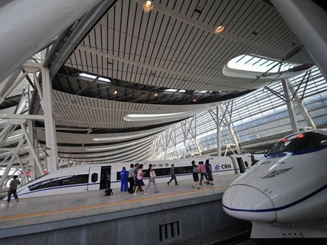 中国京津城际铁路从2008年开始服务,连接北京和天津两个城市,是世界上最快的常规列车之一。京津城际铁路全长120公里,最高时速达到350公里/每小时,全程运行时间30分钟。该高速铁路使北京至天津的往返时间从70分钟减少到了30分钟,在开始服务的第一年,运送旅客达187万人次。