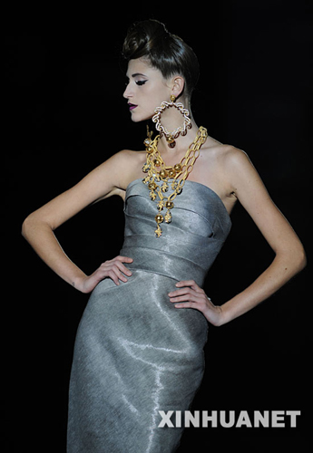 2月20日,模特在西班牙马德里时装周上展示设计师汉尼巴尔·拉古纳的作品。 第51届马德里时装周于2月18日至23日举行。 新华社记者陈海通摄