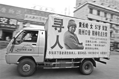 过年时,五旬母亲走亲戚时在新洲街头走失,为了寻人,孝子雇佣一辆货柜车,在车厢上挂起大幅海报,呼唤母亲尽快回家。昨日上午,在东西湖吴家山三秀路,这辆小型货柜车十分醒目(见图)。