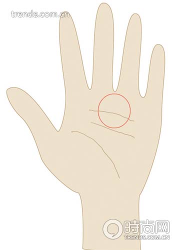 ●如果心区出现“米”字纹,预示易患心肌缺血、心绞痛,尤其当此区的“米”字纹和智慧线尾端、生命线尾端的“米”字纹相呼应时,提示有中风的危险。