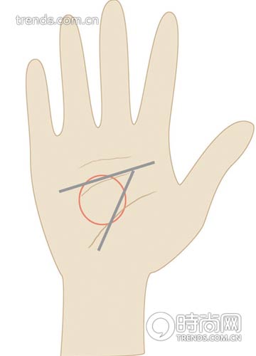 ●如果这个区域没有杂纹,色泽红润,智慧线和生命线的弧形圆滑,表明肝脏健康。