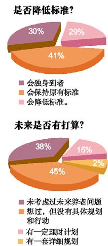 报告指出,当今大龄独身女性对自身及家庭未来的危机认识不充分,她们必须提早考虑自己的养老规划问题。缺乏家庭养老基础的独身人士,特别是独身女性在不久的10~20年间将形成一股极大的社会需求,社会养老的发展和完善迫在眉睫。