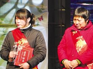 婆媳俩上台领奖。